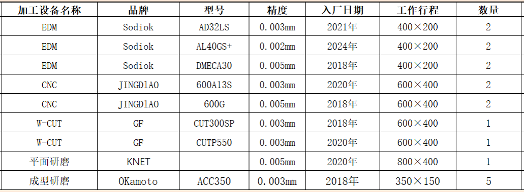 模具设备清单